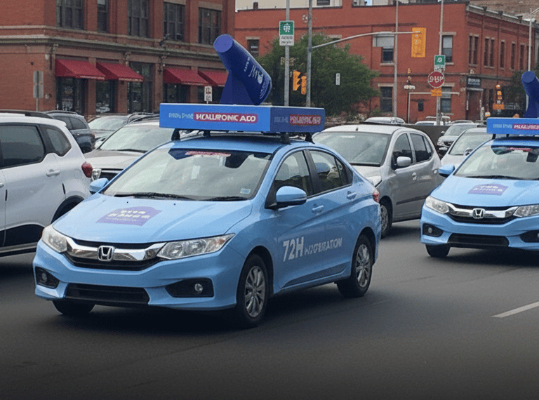 Advertise across Canada with rideshare, delivery, and commuter vehicles.